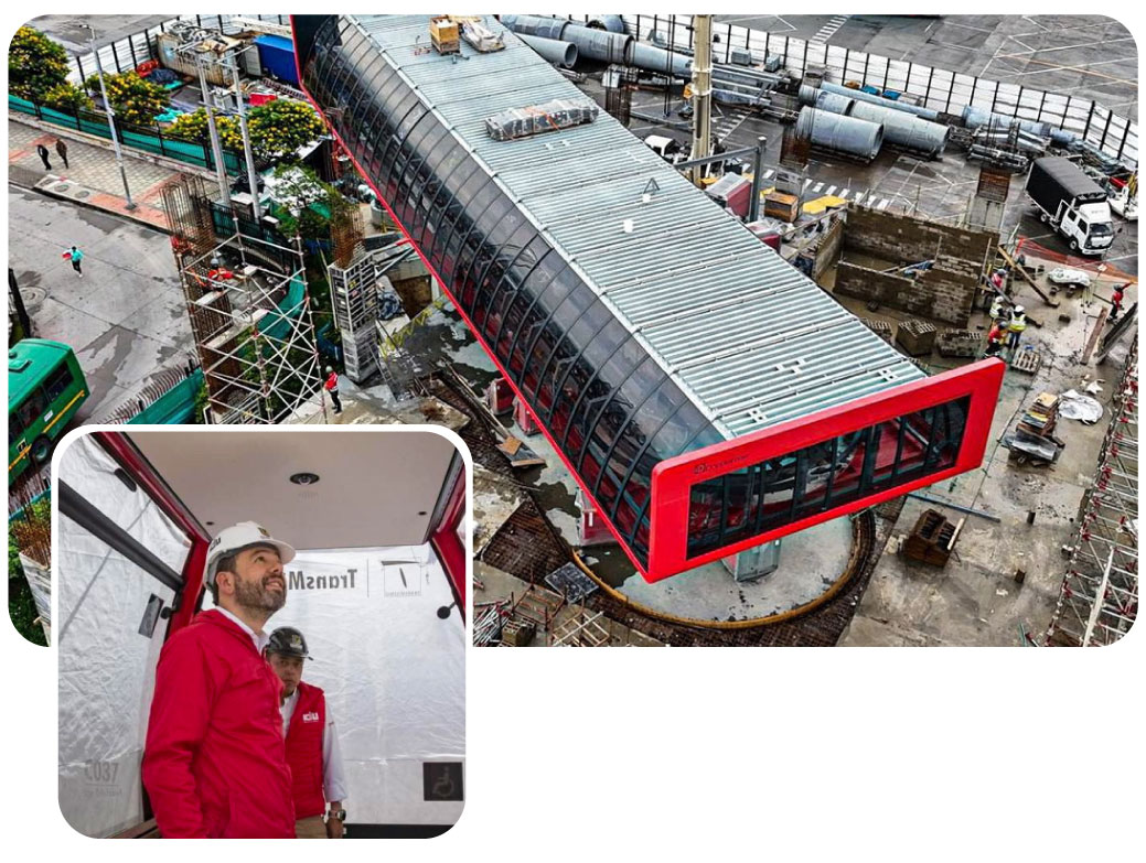 El alcalde Carlos Fernando Galán, junto con el director del Instituto de Desarrollo Urbano (IDU), Orlando Molano, y el secretario de Seguridad, Convivencia y Justicia, César Restrepo, visitaron las obras para supervisar los avances y revisar personalmente las primeras cabinas ya instaladas.